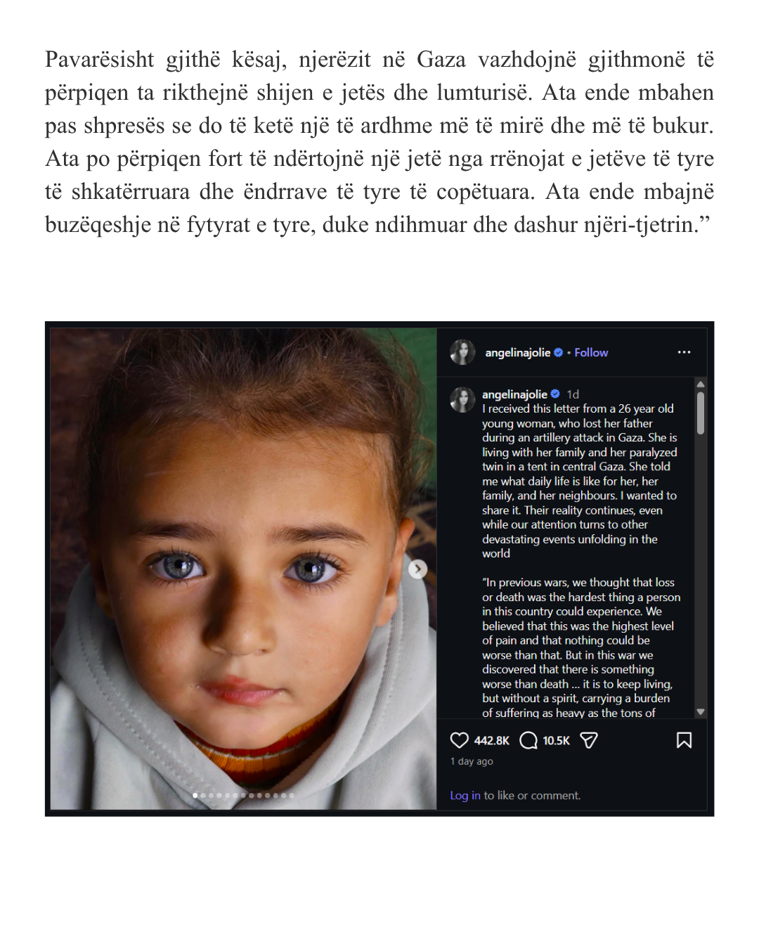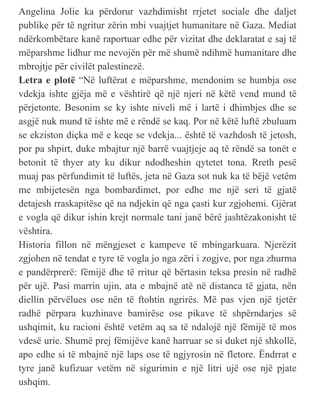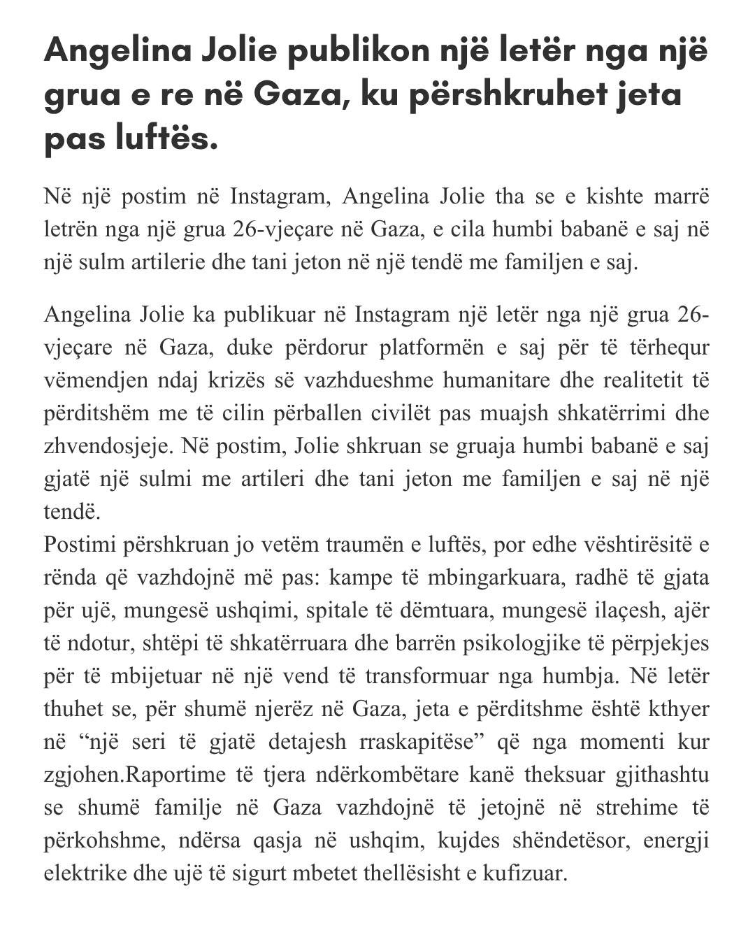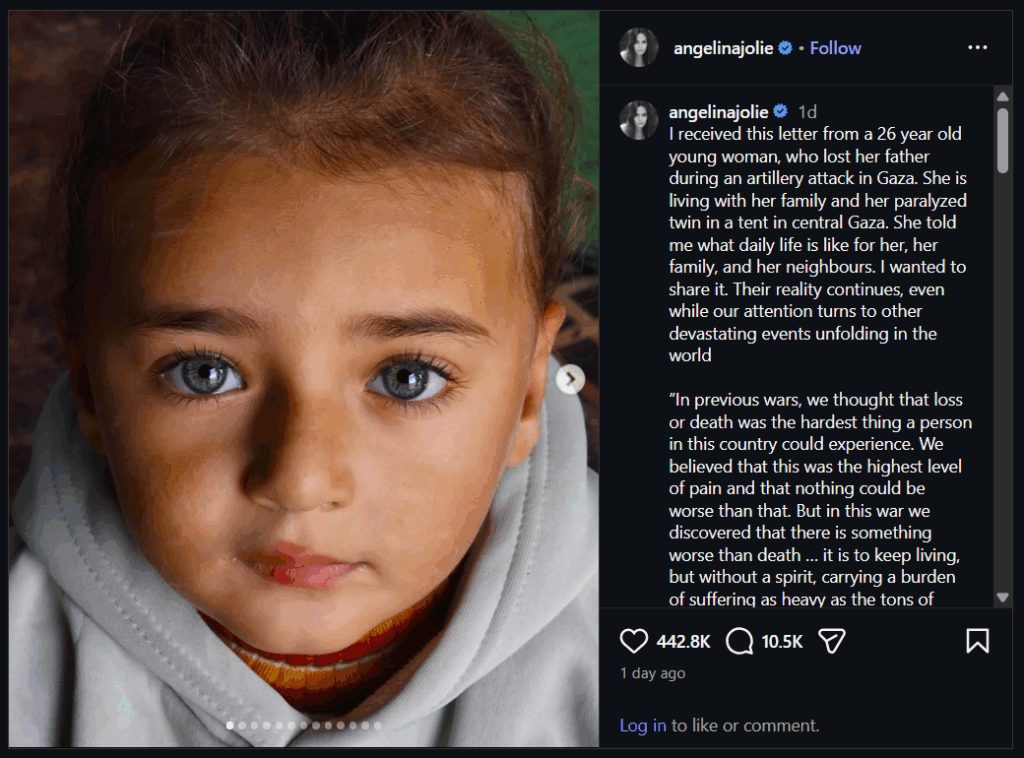 Angelina Jolie Shares Letter From Young Woman in Gaza Detailing Life After War